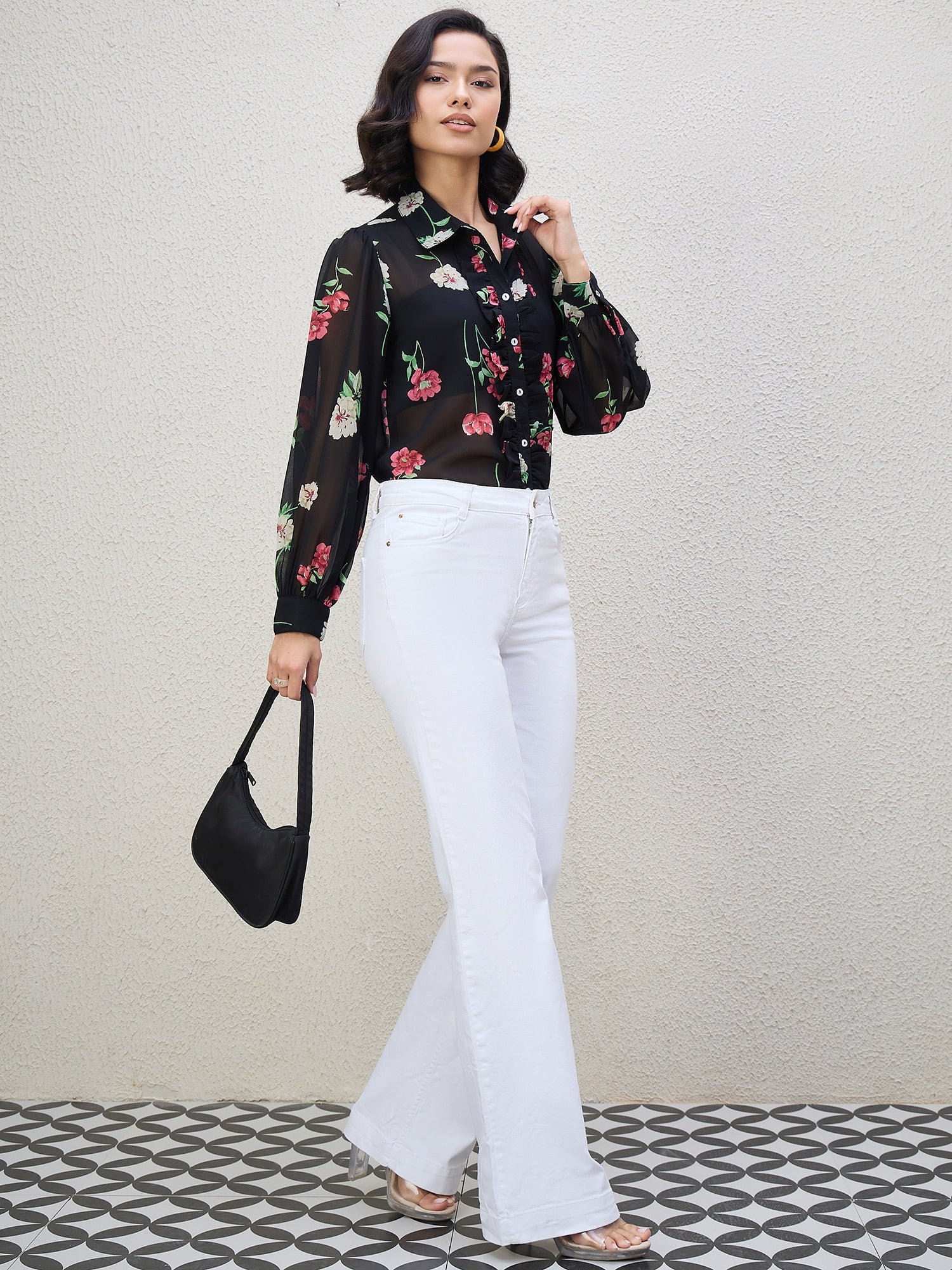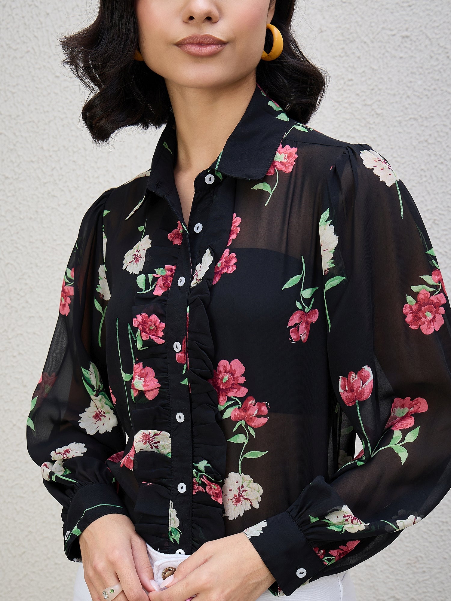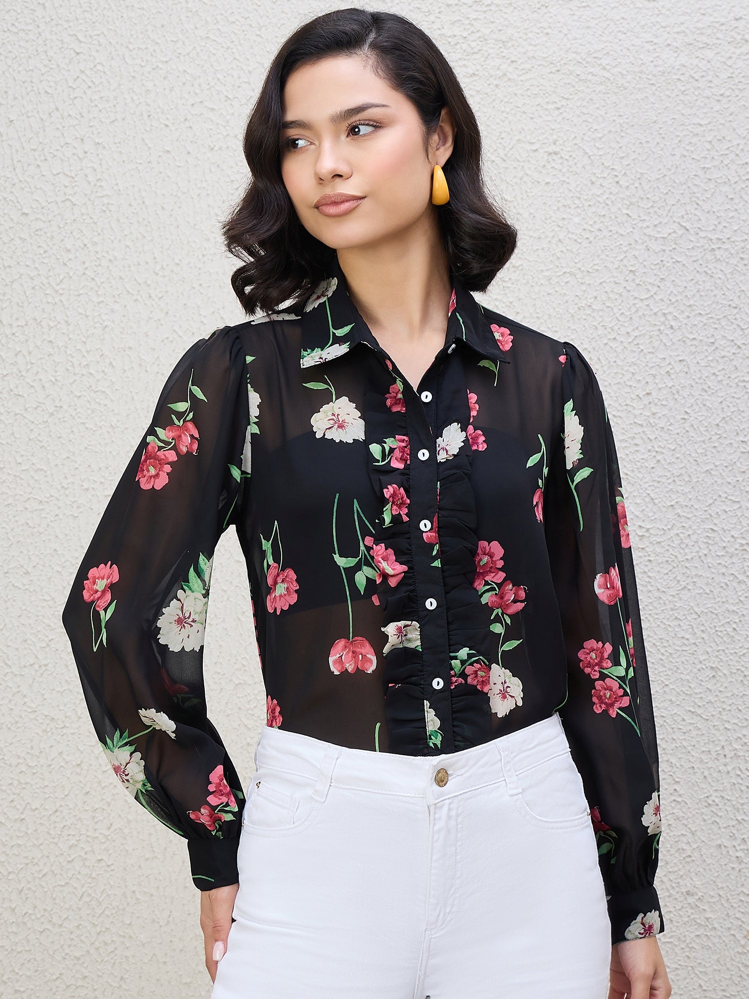 FLORAL PRINT FRILL SHIRT