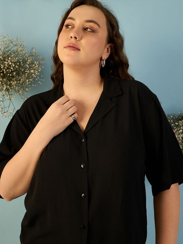 Relaxed Fit Cuban Collar Solid Casual Shirt
